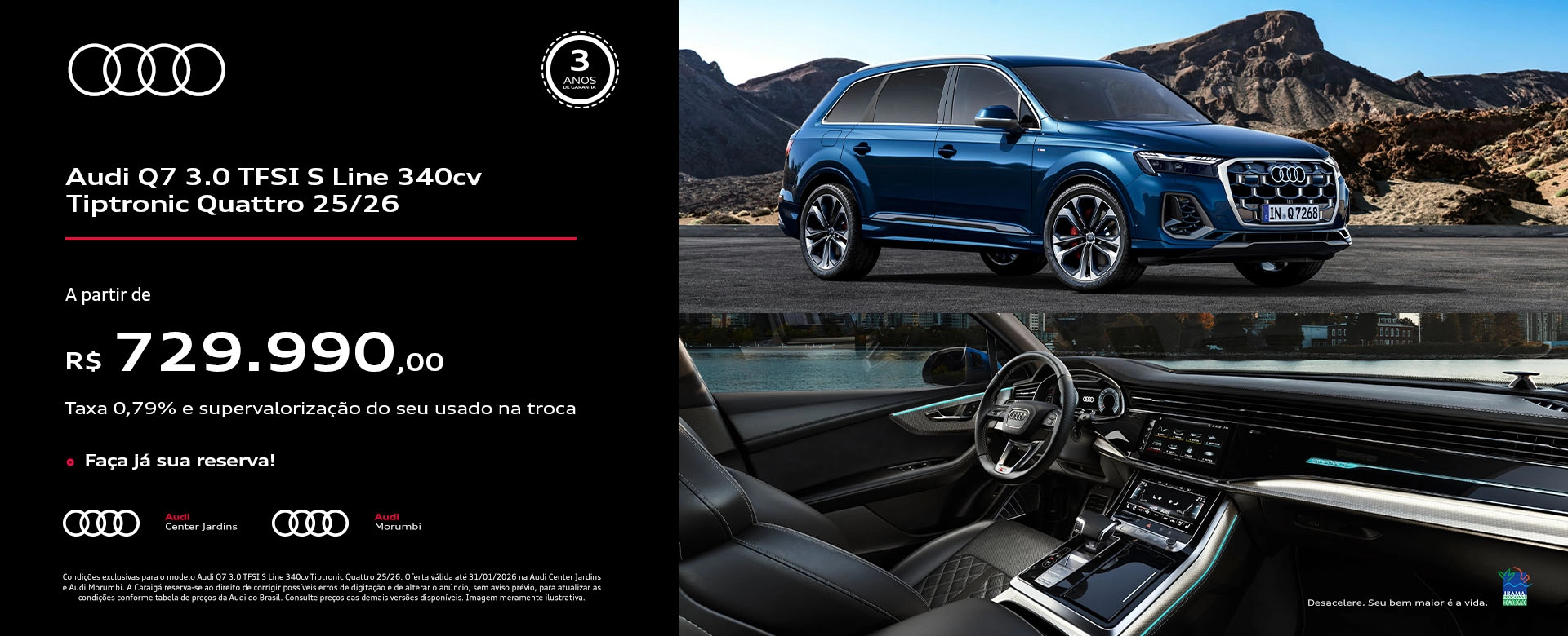 No Audi Q7 você experimentará um desempenho esportivo combinado com capacidade off-road, o que torna seu Audi Q7 incrivelmente versátil para todos os ambientes e necessidades.